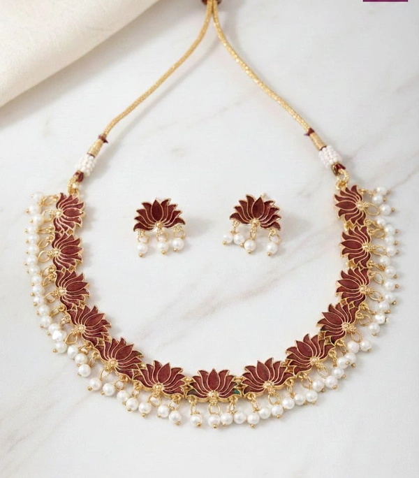 | Package Includes | Base Metal: High-Quality Gold-Plated Alloy Stones: Faux Pearls & Meenakari Enamel Earrings: Matching Lotus Studs included Color Options: Available in Classic Emerald Green and Royal Maroon Red Package Contains: 1 Choker Necklace + 1 Pair of Earrings |