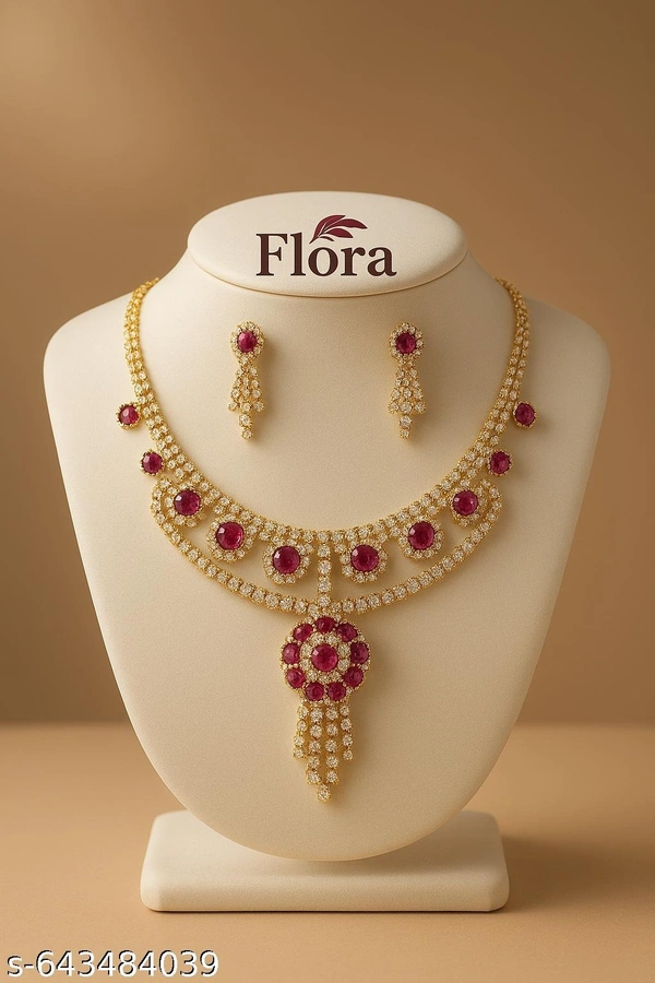 Flora Gold Plated Ruby Green Crystalstone Necklace Set